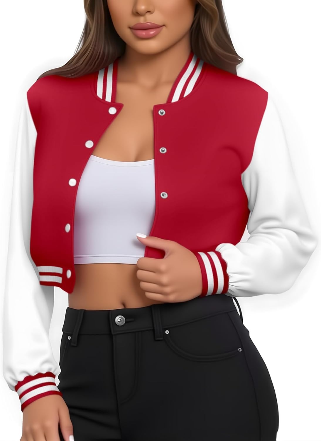 Entdecke die trendige Damen Crop Bomber Jacke im Baseball-Stil. Modernes Color Block Design, bequem und vielseitig kombinierbar – perfekt für deinen Alltag!